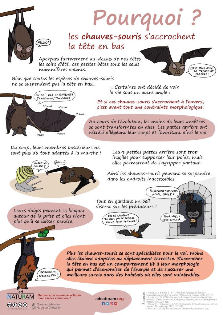 • Howell, D. J., & Pylka, J. (1977). Why bats hang upside down: a biomechanical hypothesis. Journal of theoretical biology, 69(4), 625-631. https://doi.org/10.1016/0022-5193(77)90371-X